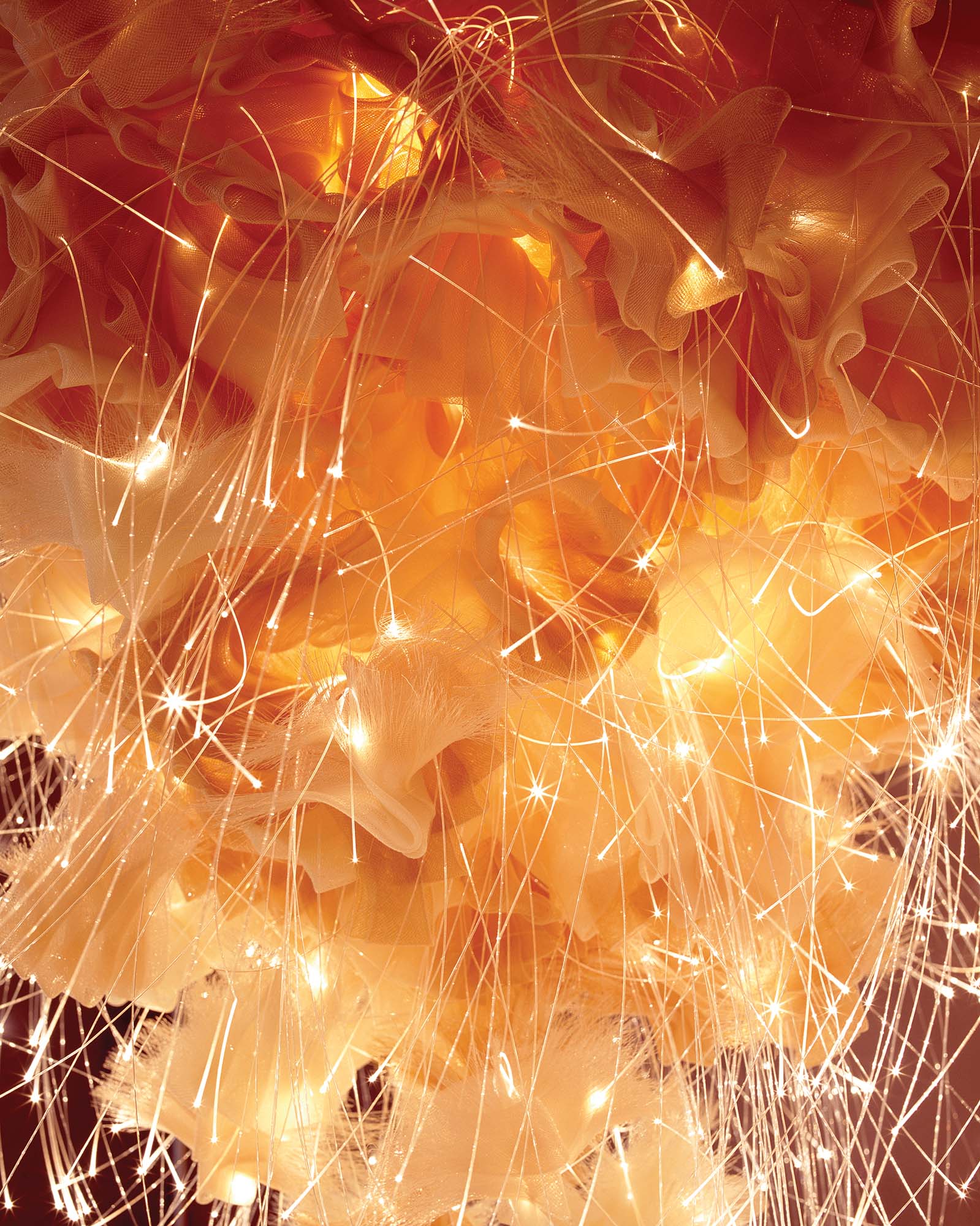 Ø 700mm x H 1000mm Woven polymer Polymer end emitting fibre optics Meticulously pleated and sewn coils of nylon make up the body of this piece, perforated by curvaceous lengths of brilliant filament.